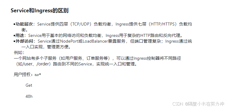 需要指出ClusterIP只在集群内部,而VPC内网允许同一VPC下的其他资源访问,比如自建数据库或其他非K8s的服务。