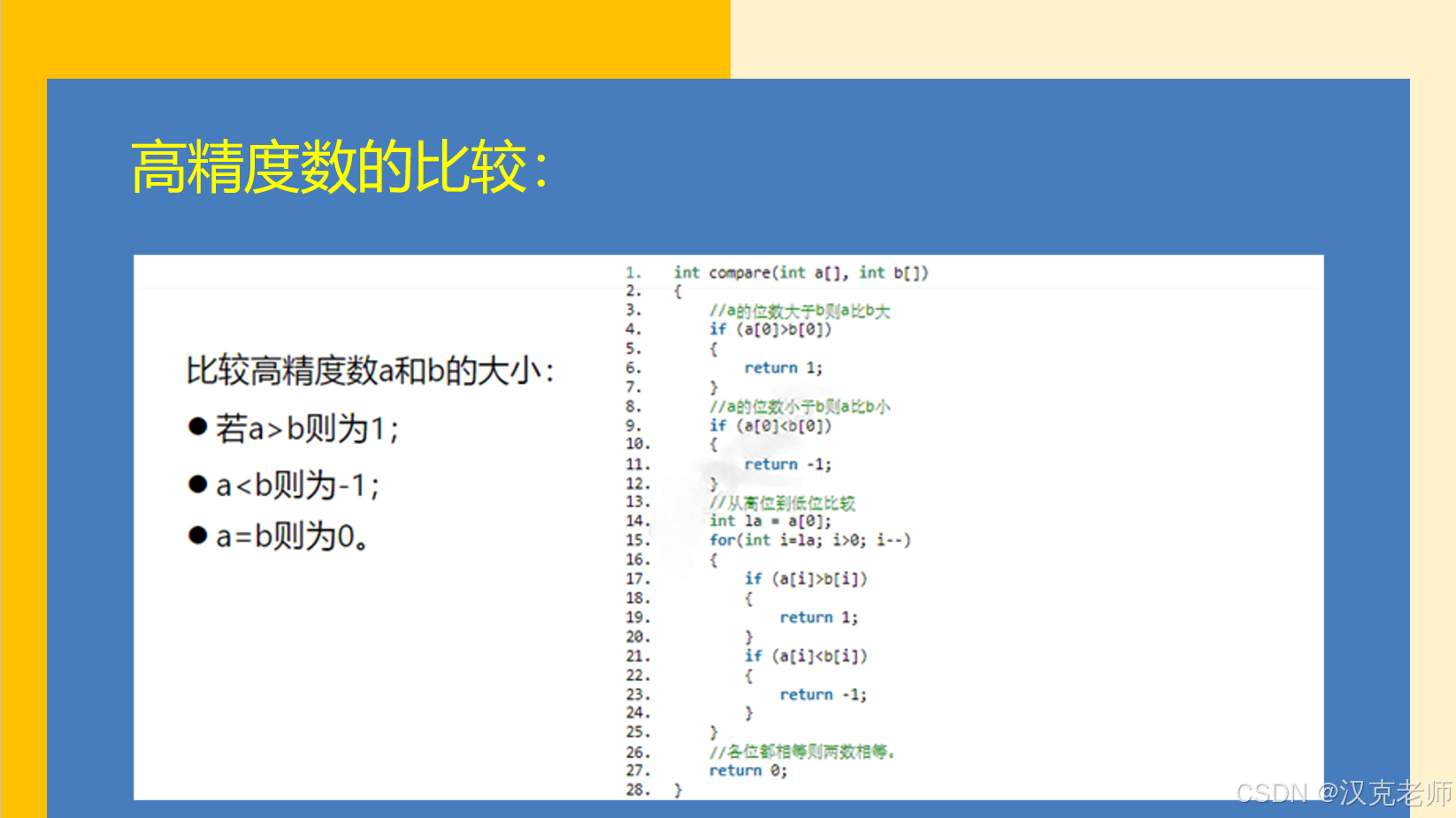 //比较高精度数字的大小,a>b为1, a<b为-1, a=b为0
