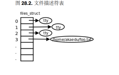 当调用open打开一个文件或创建一个新文件时,内核分配一个文件描述符并返回给用户程序,该文件描述符表项中的指针指向新打开的文件。当读写文件时,用户程序把文件描述符传给read或write,内核根据文件描述符找到相应的表项,再通过表项中的指针找到相应的文件。