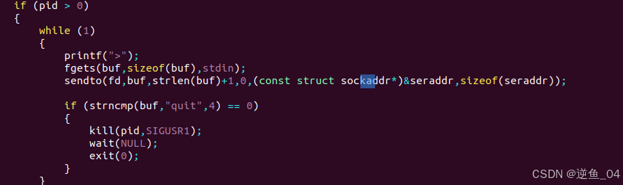 【1】如果是quit就将状态变为QUIT,向服务器发送结构体,服务器读取后向其他客户端发送退出信息,并删除客户端信息
