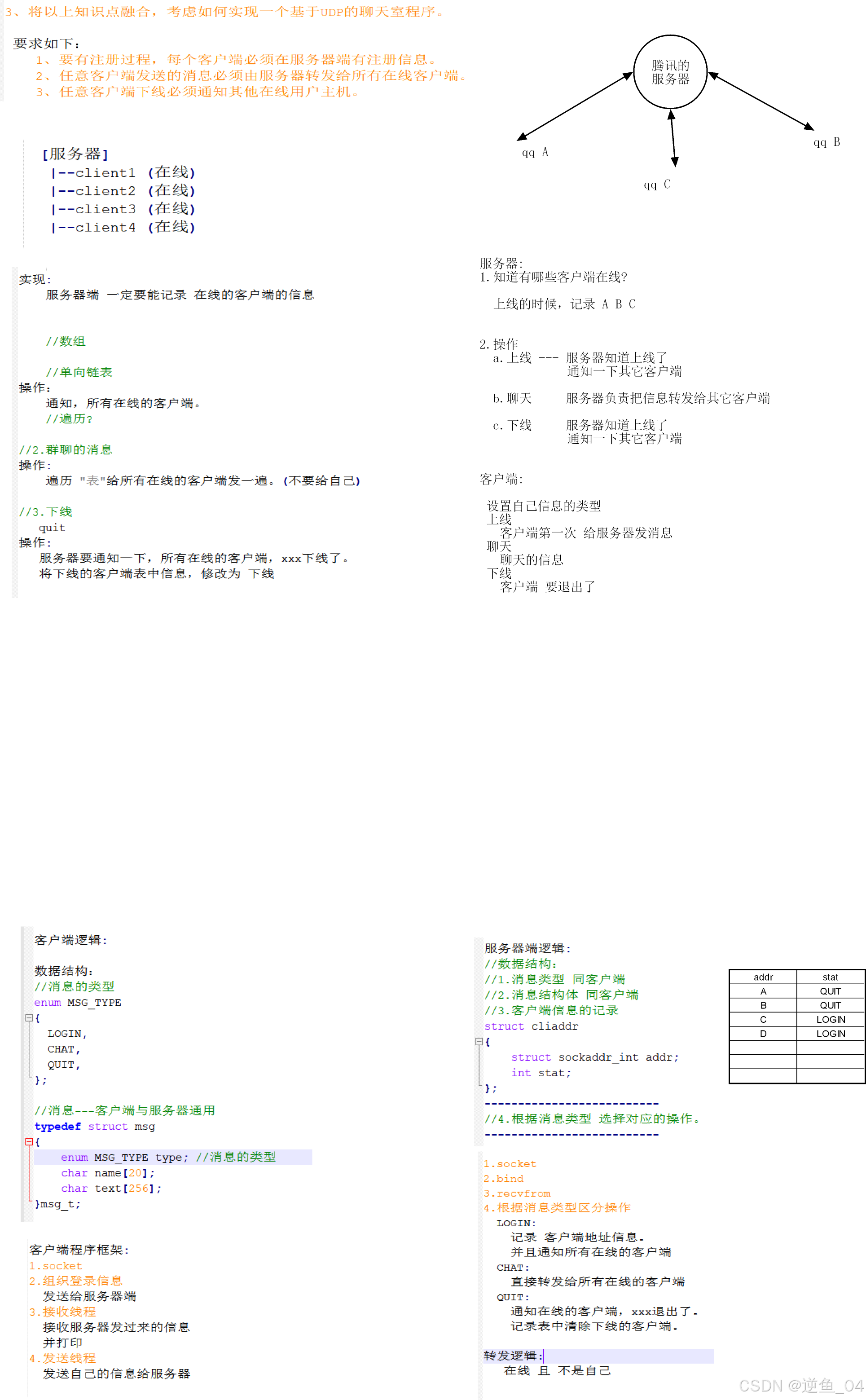 (1)定义结构体msg_t用于存储客户端数据