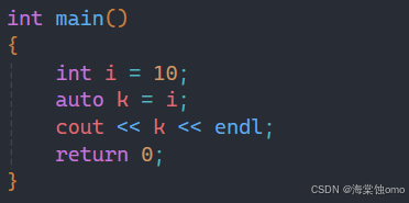 auto这个类型基本应用如上图所示,它的作用就是可以自动通过右边初始化值来推导k的类型。