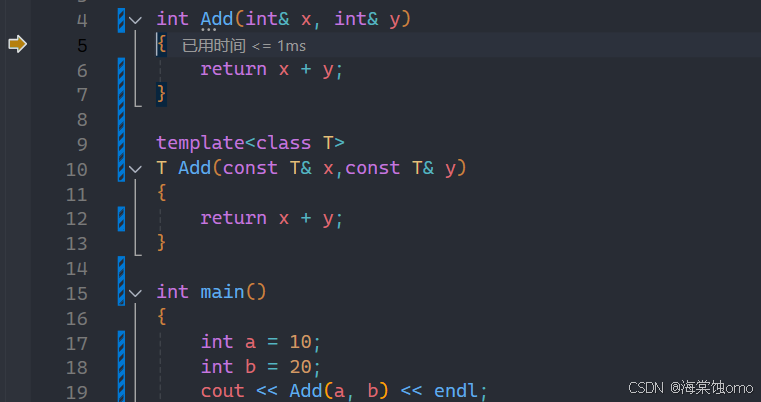 这样就完成了一个简单的交换函数模板,其中的typename可以换成class,不影响使用。