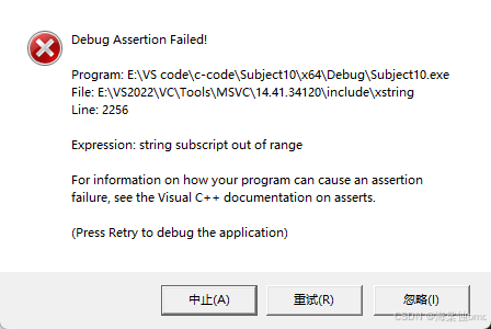 这其实就是在[]符号重载中加入了assert断言,如果访问的字符超出了字符串的长度,就会报上面的错误。