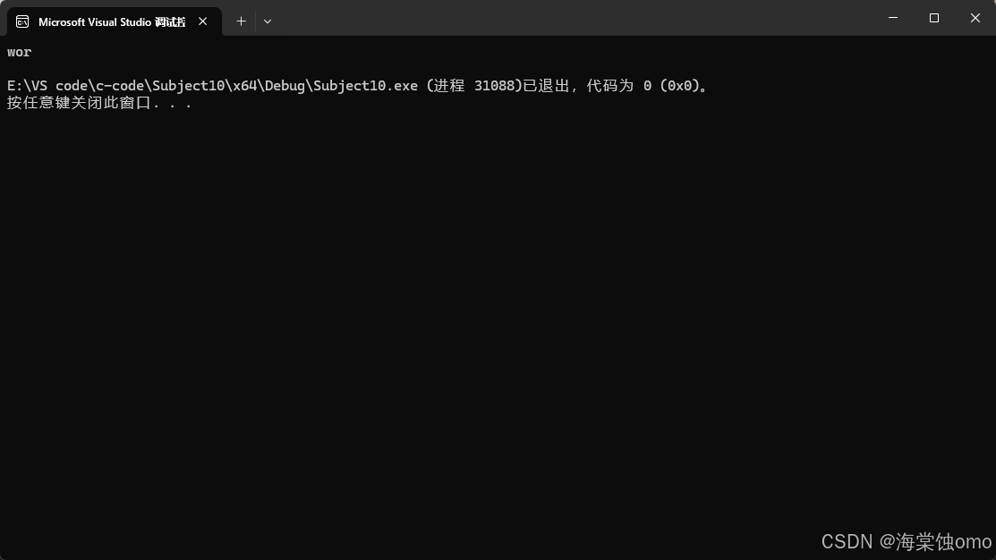 另外,如果要访问的字符超出了字符串的长度,程序运行后会报错。