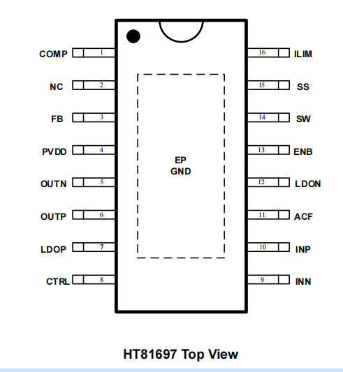 ● 此外,HT81697集成了输出端过流保护、片内过温保护保护等功能。