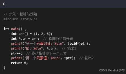 指针是C语言的“灵魂”,用于直接操作内存地址: