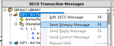 其中,H<>E是涵盖了主机和设备之间双向的通信情况,包括请求、响应、状态报告等各种类型的消息交互,如S1F1,后面对其进行测试说明。