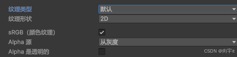 默认纹理,这是所有 Textures(纹理)最常用的设置。它提供对 Texture 导入的大多数属性的访问。