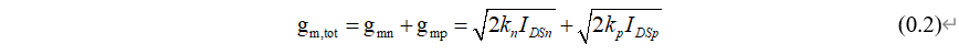 PMOS 输入差分对的总跨导可以表示为