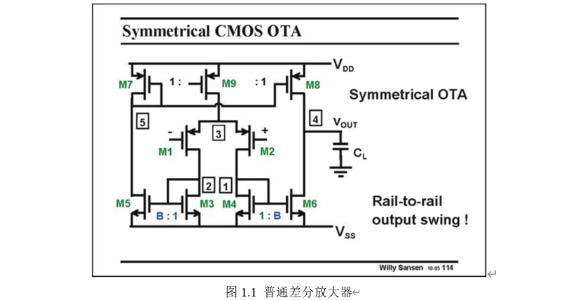因为自己做的一个东西,需要一个轨到轨放大器(RTR),所以顺便写了笔记,参考了Sansen的《模拟集成电路设计精粹》,只写了一些简单的内容,里面也有一些复杂的电路,虽然都看了,但是也只是浅浅的看了一下….有需要再深入学习。随手用TSMC18工艺,调了一个“基于1:3电流镜的轨到轨输入运放”