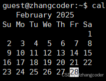 不加参数,默认打印的是当月的日历,显示今天是多少日