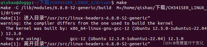 cd /home/qishao/下载/CH341SER_LINUX_1/driver