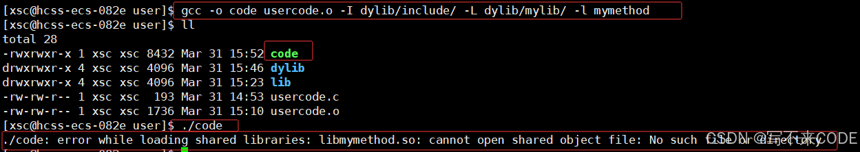 gcc -o code usercode.o -I ./lib/include -L ./lib/mylib/ -l mymethod