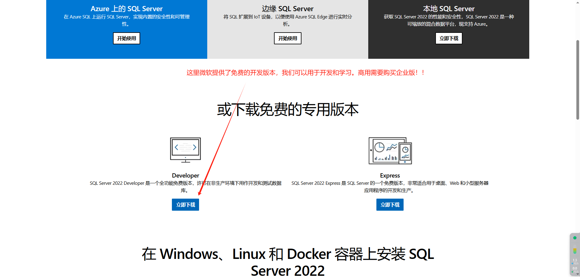 下载地址:https://www.microsoft.com/zh-cn/sql-server/sql-server-downloads
