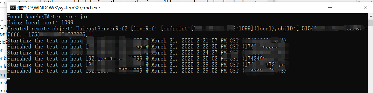 4、打开JMeter.bat,点击运行,选择远程启动,选取需要运行的从机。