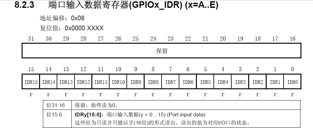STM32是32位的单片机,所以STM32内部的寄存器都是32位的,但是端口只有16位,所以这个寄存器只有低16位对应的有端口,高16位没有用到。