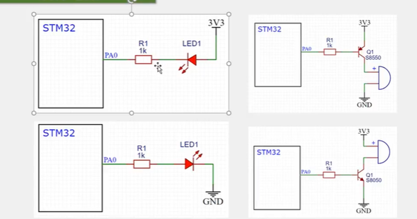 在推挽输出模式下。STM32对IO口具有绝对的控制权。高低电平都由STM32说的算。