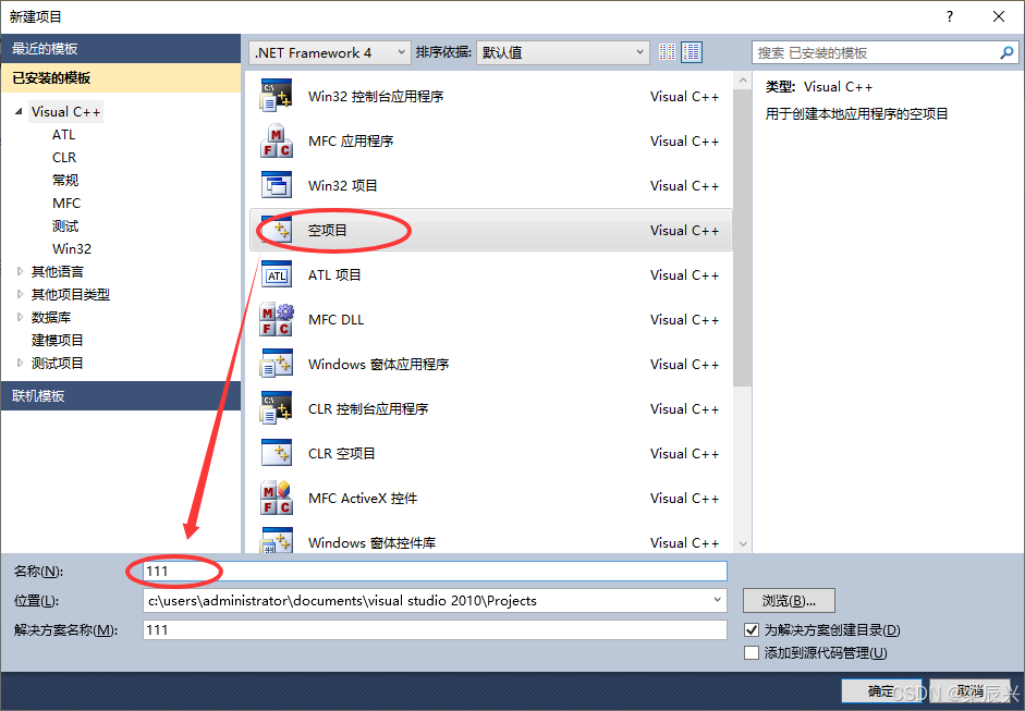 3.选择“空项目”——输入“项目名称”——单击确认按钮。