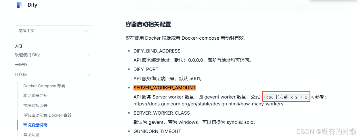 我这里是CPU64核,256G内存,试了一下调成129,Dify有点动不了,然后我改成了65(每次修改.env文件参数需重启Dify)