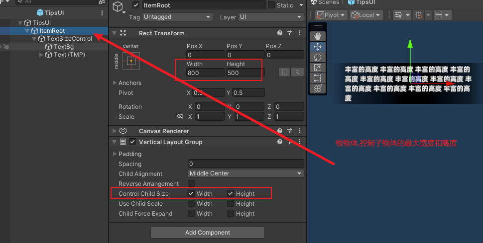 使用Ugui制作一个可以根据文本数量自动调整宽度,并可以自动换行的文字UI