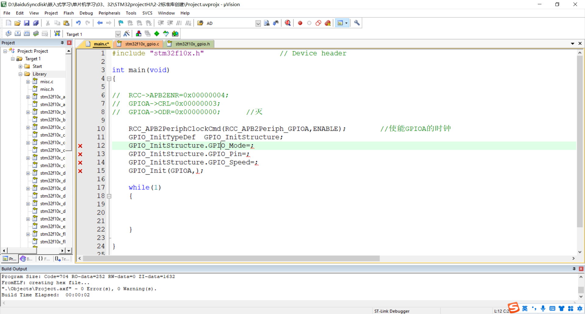 文件创建成功,库函数也是间接的配置寄存器,所以他们的步骤也是一样的,首先是使能时钟,