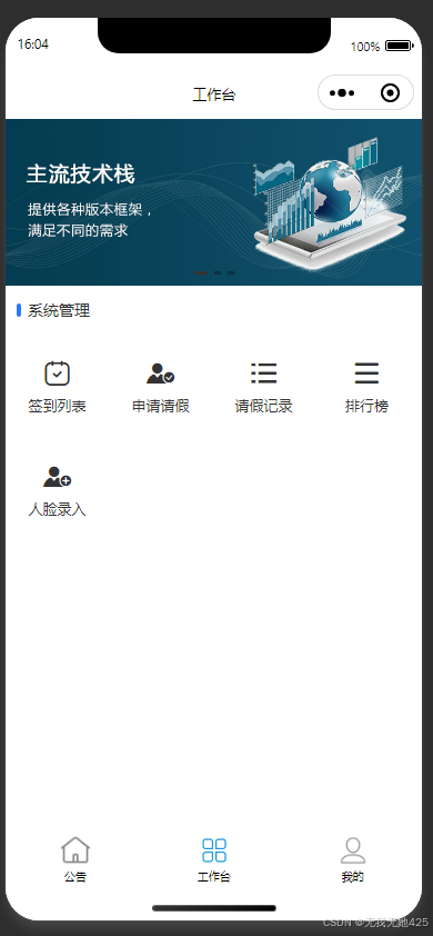 位)、考勤排行、请假申请 、个人中心
