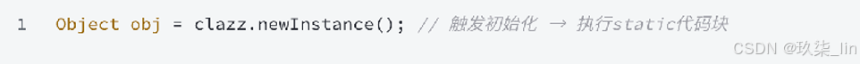 Object obj = clazz.newInstance(); // 输出:静态代码块执行!