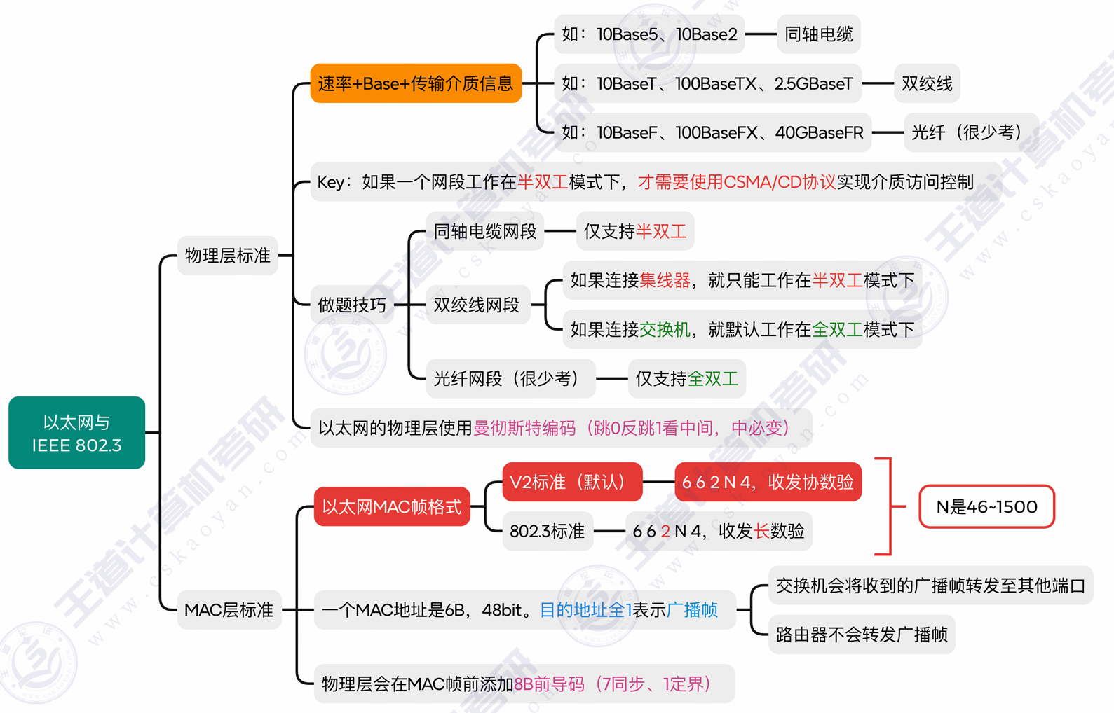 计算机网络是考研408基础综合中的一门课程,它的重要性不言而喻。然而,计算机网络的知识体系庞大且复杂,各类概念、协议和技术相互关联,让人在学习时容易迷失方向。在进行复习时,面对庞杂的的知识点,很多人会感到困惑和焦虑。本文整理了计算机网络这门课程的相关知识点,帮助大家构建清晰的知识框架,同时也是对自己学习成果的总结与复盘。本文参考了王道计算机教育——计算机网络考研复习指导这本书和对应的视频,总结过程中难免会出现错误,殷切希望各位读者批评指正。