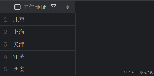 (4)查询公司员工的上班地址有哪些(不要重复)