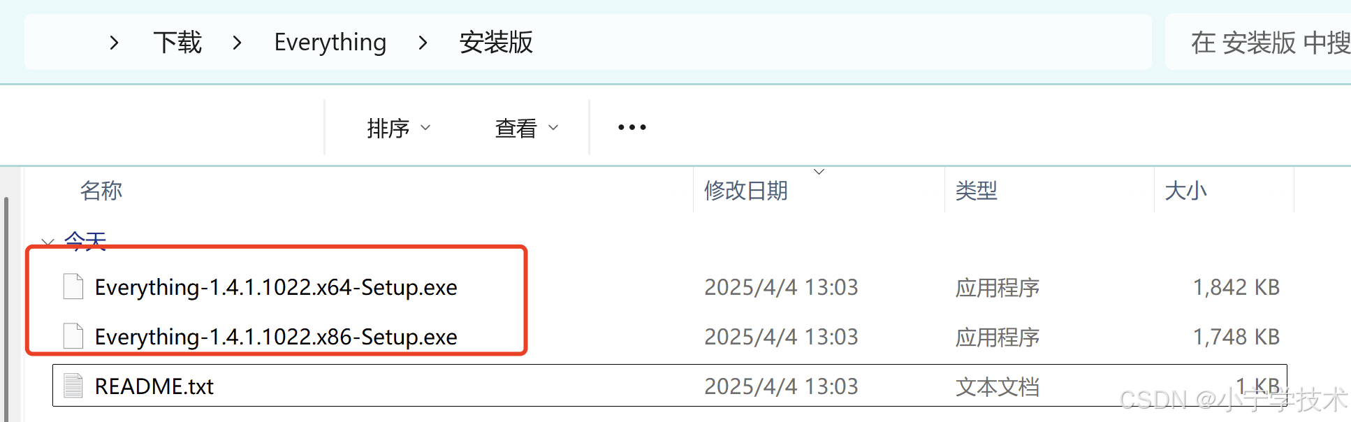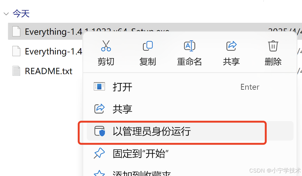 根据系统位数,右键点击对应的Everything 安装程序,选择 “以管理员身份运行” 。