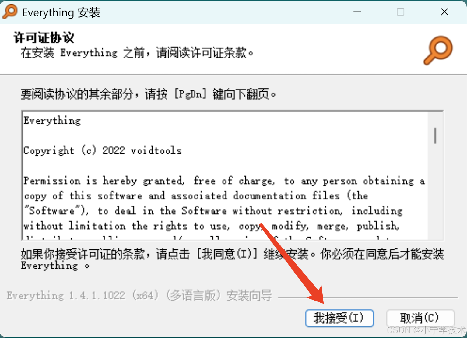 在 “许可证协议” 界面,仔细阅读相关条款后,点击 “我接受” 。