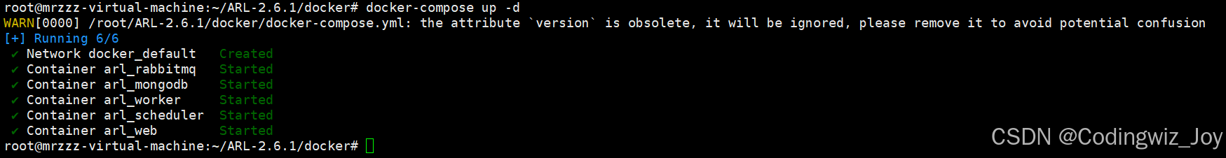 root@mrzzz-virtual-machine:~/ARL-2.6.1/docker# docker-compose up -d