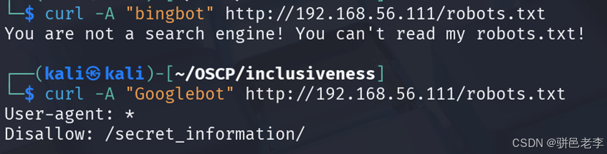 $ curl -A "bingbot" http://192.168.56.111/robots.txt