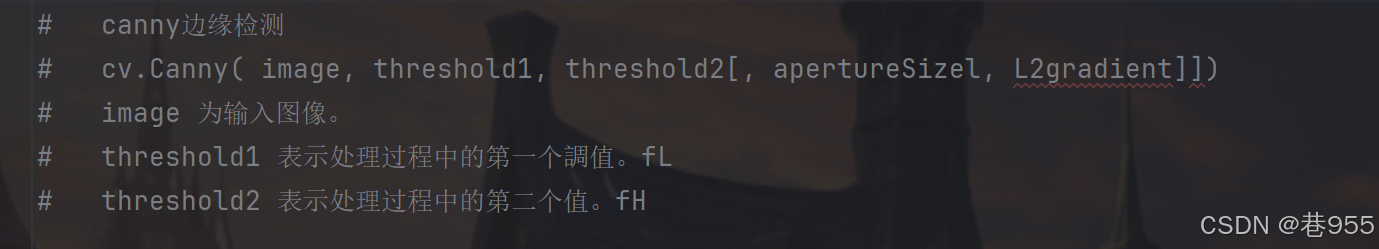 # cv.Canny( image, threshold1, threshold2[, apertureSizel, L2gradient]])