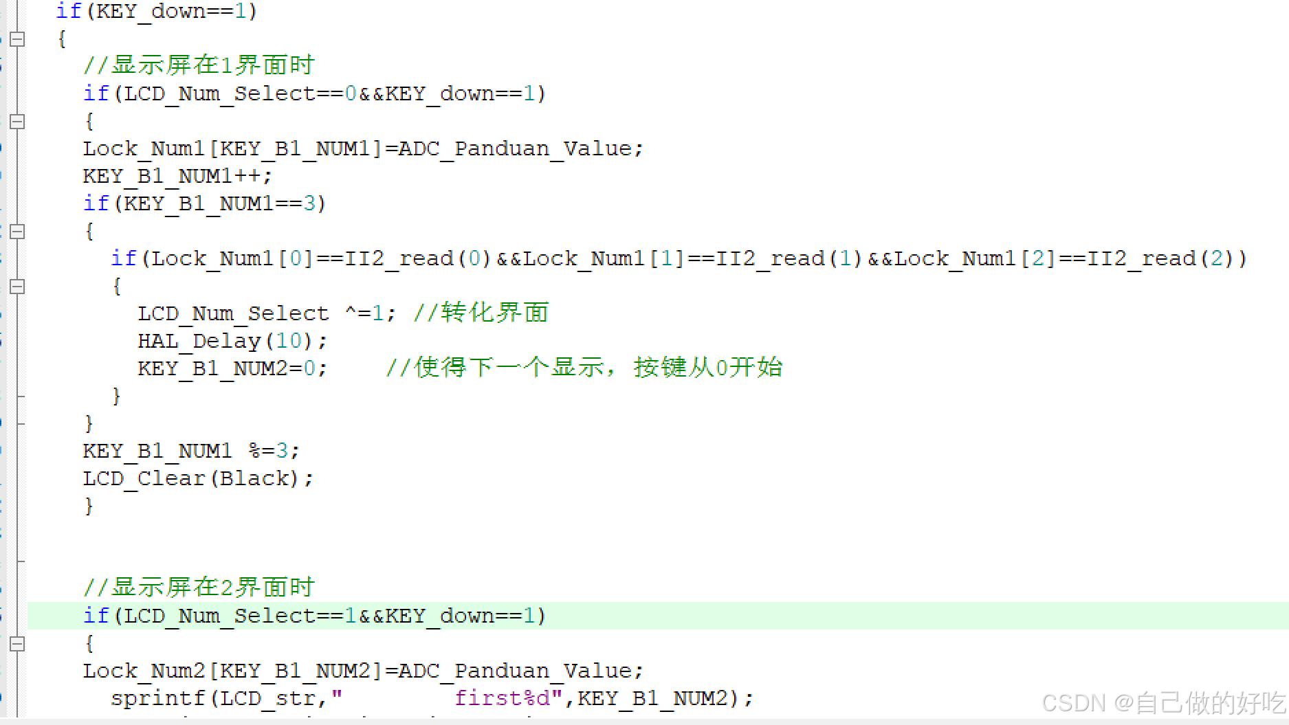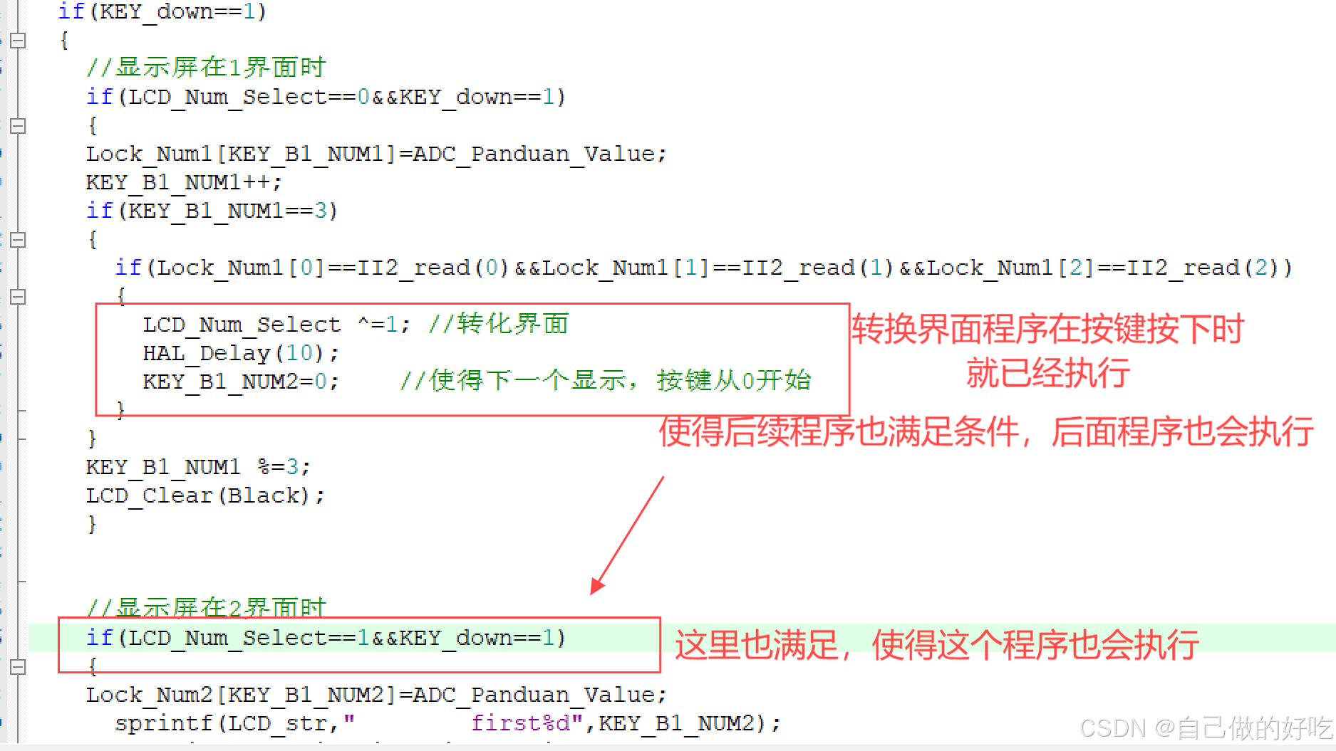 这是一个密码锁的程序,当在输入密码后,原本是要重置密码,但是程序总是在输入密码正确后总是跳转置设置第二个密码,而第一个密码总是跳过。