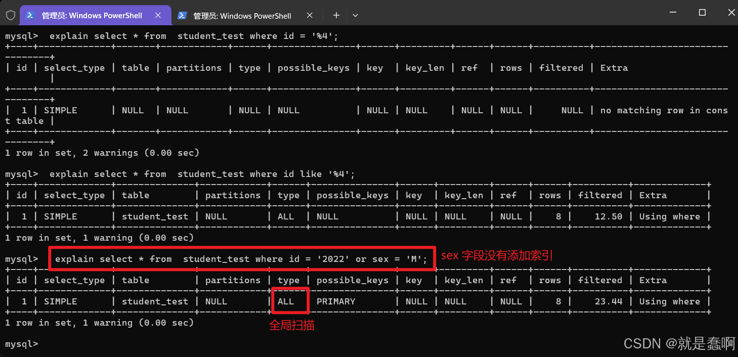 查询是否使用索引: