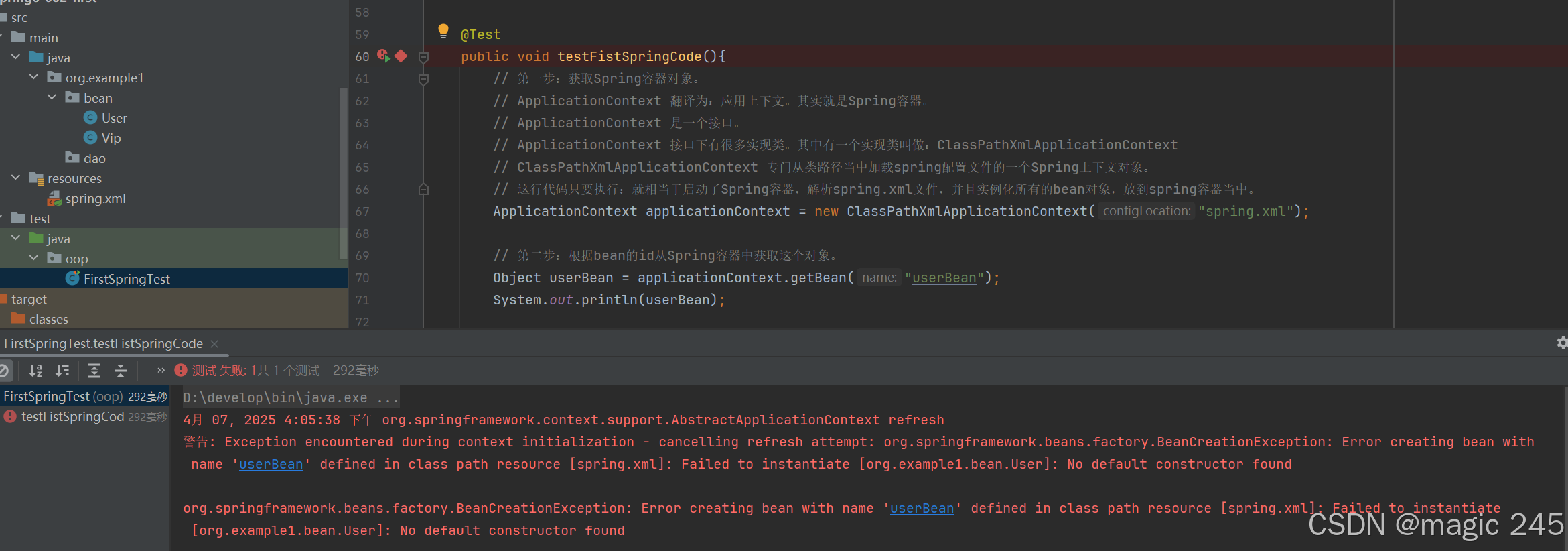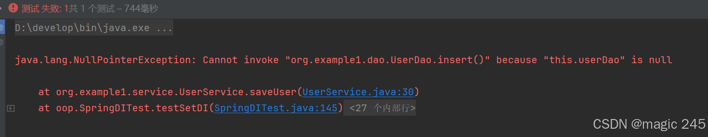我们把UserService中的set方法注释掉,再执行: