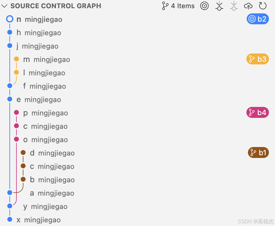 - 结果:B4继承了B1,并有自己的提交O、C、P。