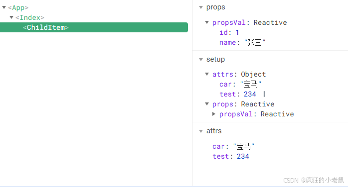 setup 函数在组件创建created()之前执行,setup函数是一个函数,它也可以有返回值,类似于Vue 2中的data()和methods()的组合,接收两个参数:props 和 context- props: 是响应式的,当传入显端prop 时他会进行更新,包含父组件传递给子组件的所有数据