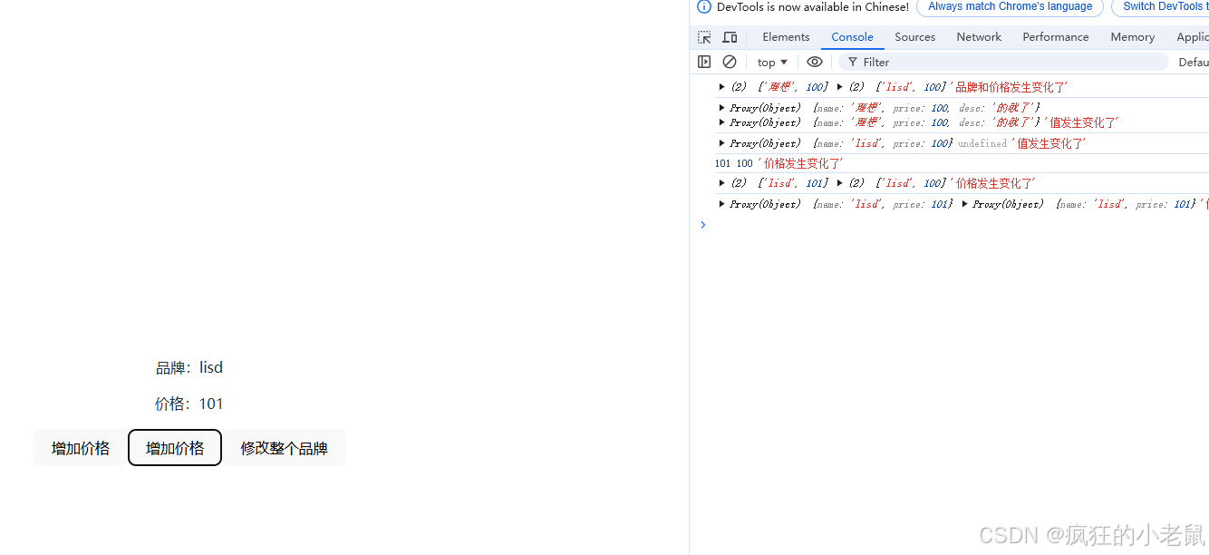 如下面代码,将对象解构赋值直接使用,也可以通过对象使用,只要值改变都会发生改变