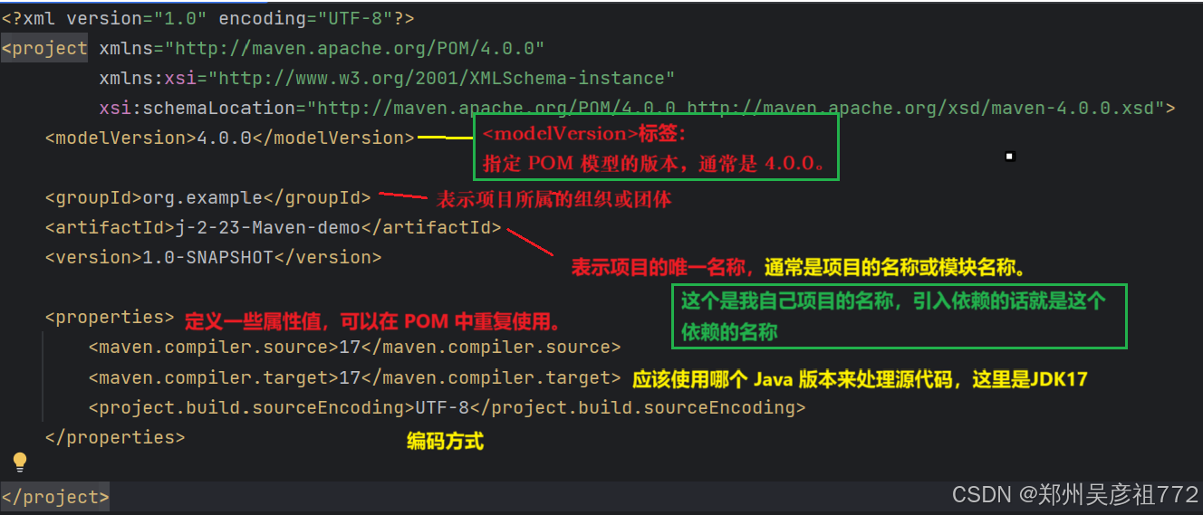 <properties>:定义一些属性值,可以在 POM 中重复使用。