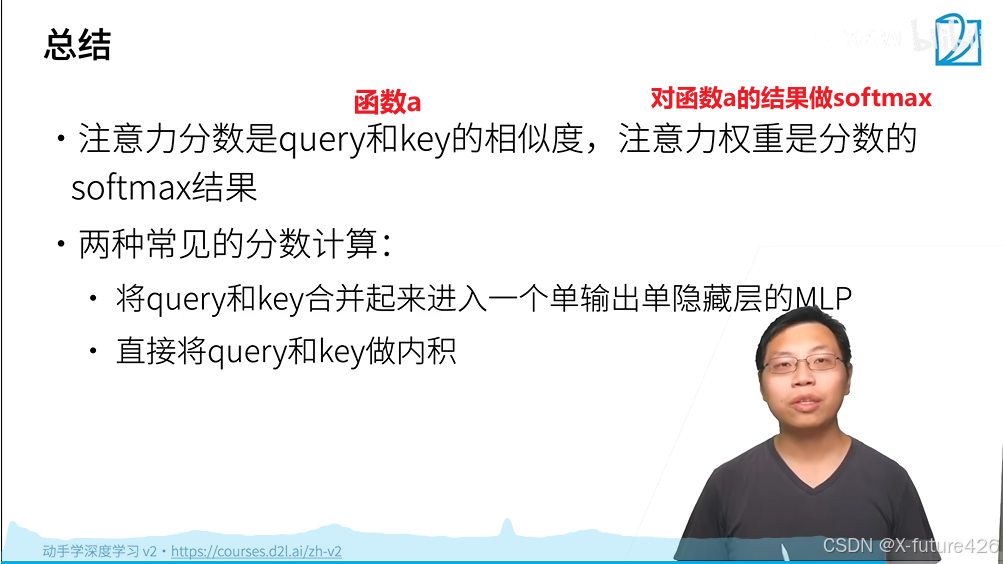 注意力机制:考虑“随意线索”,有一个注意力池化层,将会最终选择考虑到“随意线索”的那个值