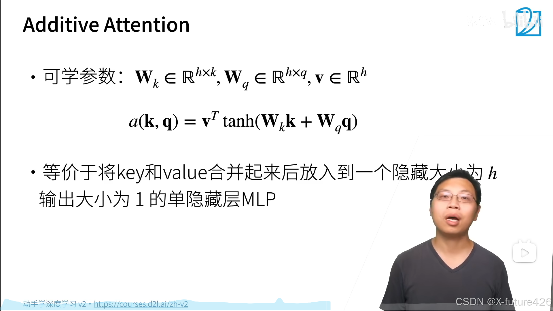 可加性的注意力,将函数a定义为上面所示的样子,其实就是将key和value合并起来,具体怎么个意思没太懂。
