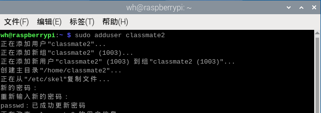 1.创建一个新的用户并将其添加进sudo组,将分配的 IP 地址交给其他同学,让其他同学用 putty 或 xshell 连接