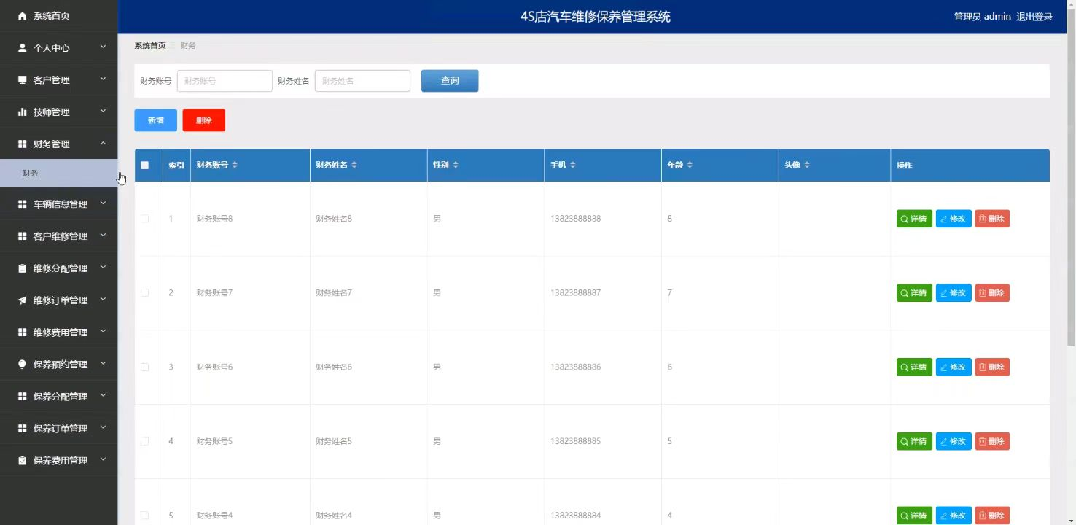 (2)本系统分为客户、技师、财务、管理员,能够满足管理人员与用户的不同需要。
