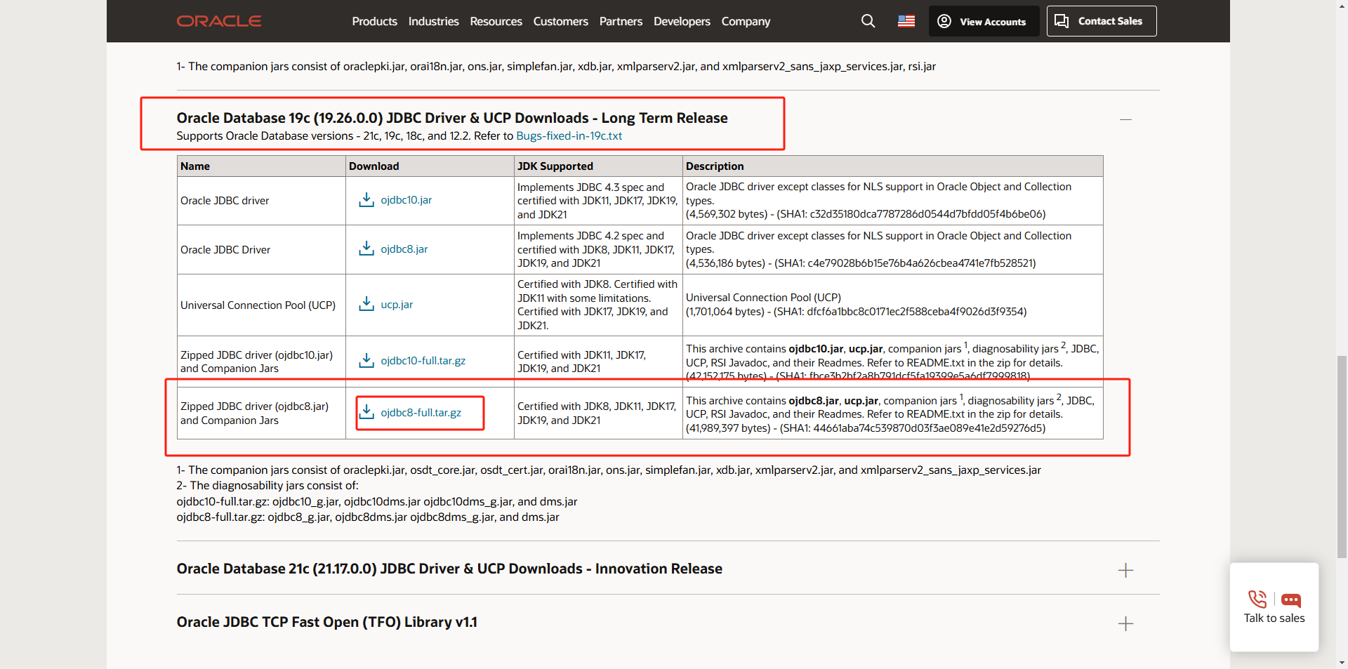 下载地址:https://www.oracle.com/database/technologies/appdev/jdbc-downloads.html