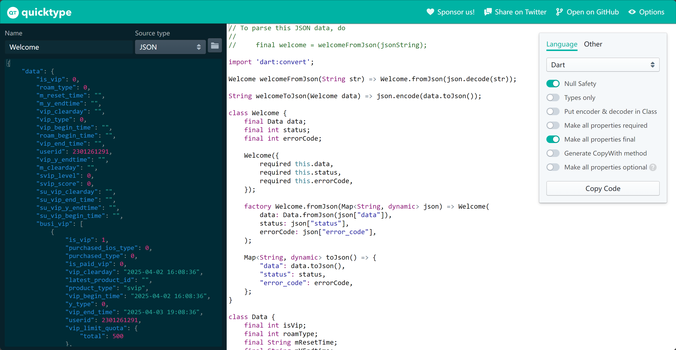 Instantly parse JSON in any language | quicktype