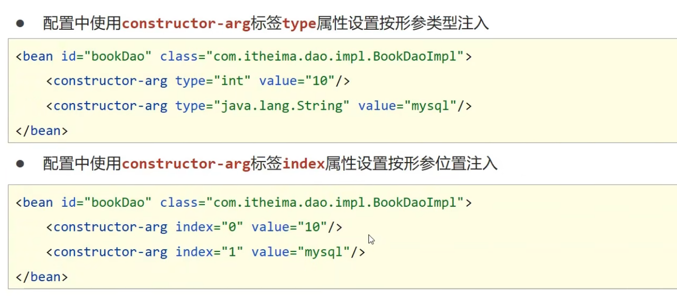 <constructor-arg name="bookDao" ref="bookDao"></constructor-arg>
