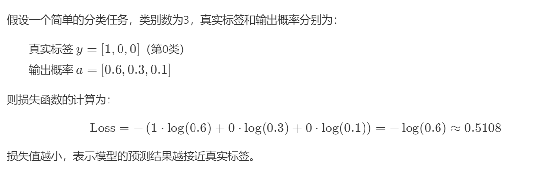 Softmax损失函数常用于多分类任务(类别数 K>2)。它的输出是每个类别的概率,便于解释和比较。